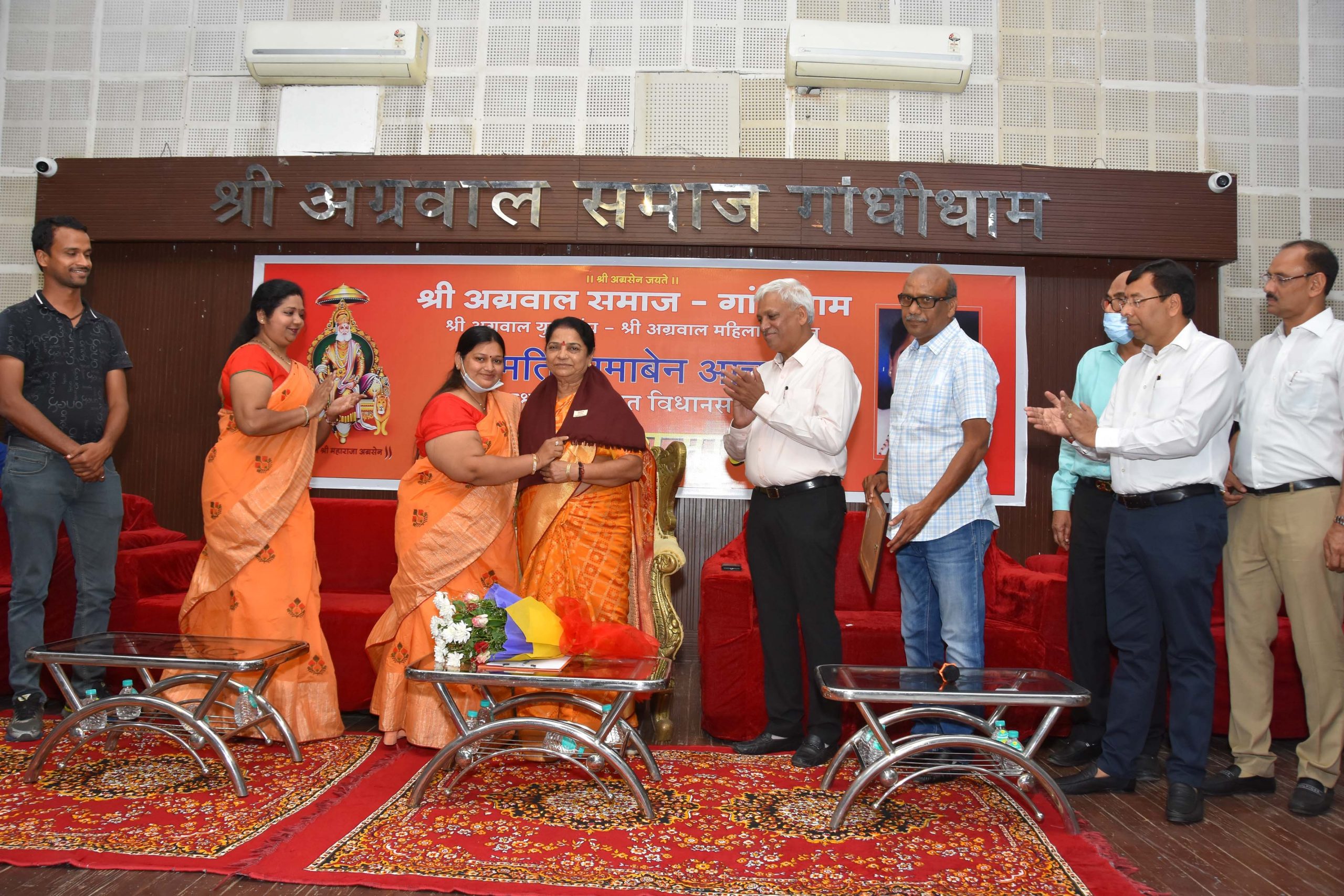 ગાંધીધામ મુકામે વિધાનસભાના અધ્યક્ષા ડો.નીમાબેન આચાર્યનું અગ્રવાલ સમાજ દ્વારા ઉમળકાભેર સ્વાગત અને સન્માન કરવામાં આવ્યું તે પ્રસંગની તસવીર. આ તકે...