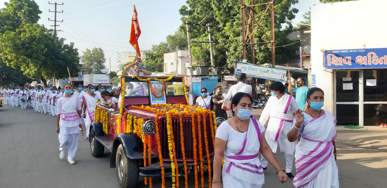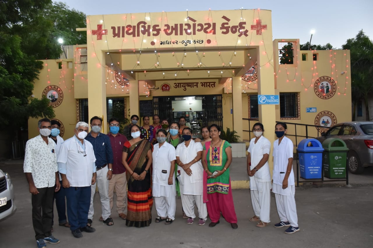 દેશમાં વેકિસનના ૧૦૦ કરોડ ડોઝ પૂર્ણ થવાની ખુશીમાં ભુજ વ્યાયામ શાળા અર્બન હેલ્થ સેન્ટર ખાતે કોરોના વોરિયર્સ એવા મેડીકલ સ્ટાફનું...