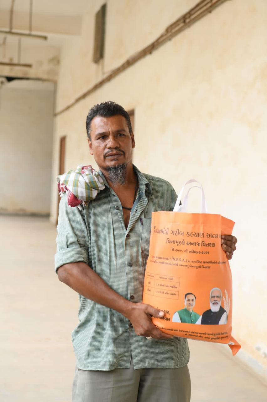 “ઘરમાં ૬ જણાં ખાનારા છીએ અને રેકડીનું મજુરી કામ કરૂં છું. બેન બી.પી.એલ. કાર્ડ છે ને બાબુભાઇની દુકાનેથી મફત અનાજ...