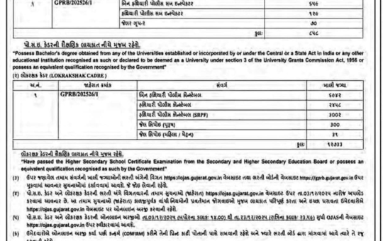 858 પીએસઆઇ અને 12733 પોલીસમેન માટેની ભરતી જાહેર 3/12/2025 થી 23/12/2025 તારીખ સુધી ફોર્મ ભરી શકાશે