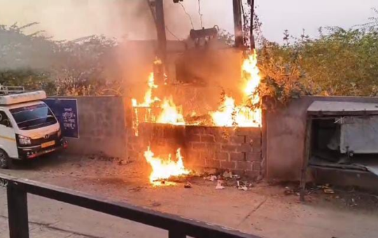 કચરામાં આગ લાગી બાદ લાઇટ ની ડીપી માં પણ થયો બ્લાસ્ટ લાઇવ દ્રશ્યો માં અફડા તફડી નો માહોલ ફાયર બ્રિગેડ...
