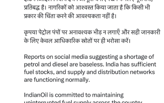 ઇન્ડિયન ઓઇલ કોર્પોરેશન દ્વારાકોણ આ અપીલ કરવામાં આવી છે. પેટ્રોલ ડીઝલનો ખોટો સ્ટોક કરીને રાખવાની જરૂર નથી.