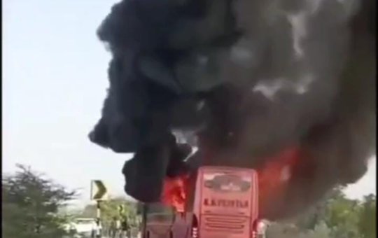 રાજસ્થાન જેસલમેર બર્નિંગ બસ અચાનક ચાલતી બસ માં આગ લાગતા 20 લોકો ના મૌત