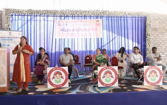 ગુજરાત મહિલા આર્થિક વિકાસ નિગમ અને મહિલા અને બાળ અધિકારીની કચેરી, ભુજ-કચ્છના સંયુક્ત ઉપક્રમે નગાવલાડીયા ખાતે એક ભવ્ય **'મહિલા સ્વરોજગાર...