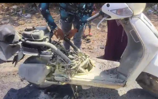 ભુજથી ભારાપર જતાં એક્ટિવમાં કોઈ અગમ્ય કારણોસર આગ લાગી. સદનસીબે જાનહાનિ ટળી