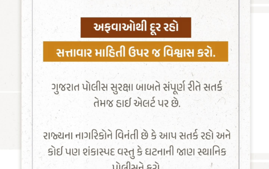 રાજ્યના નાગરિકોને વિનંતી છે કે આપ સતર્ક રહો અને કોઈ પણ શંકાસ્પદ વસ્તુ કે ઘટનાની જાણ સ્થાનિક પોલીસને કરો. પરંતુ...