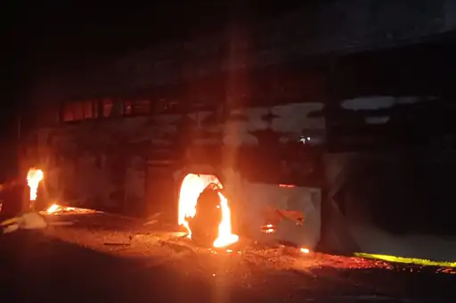 copy image કચ્છ ખાતે આવેલ રાપર નજીક નેશનલ હાઈવે 27 પર હેલી સવારે એક બસમાં આગ ભભૂકી ઉઠી.... વહેલી સવારે...