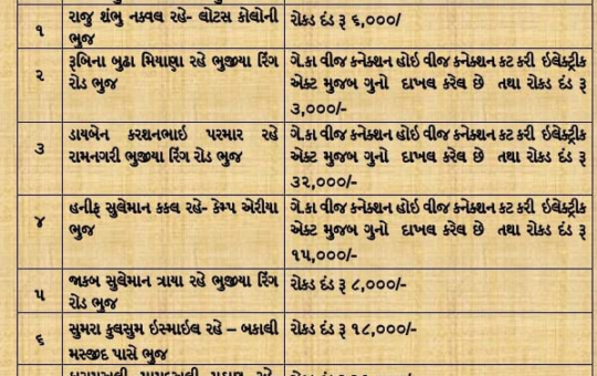 ભુજ શહેર બી.ડિવીઝન વિસ્તારમાં ગુન્હા આચરનાર ઇસમોના ગેર કાયદેસર વીજ જોડાણ વિરુધ્ધ કોમ્બિંગની કાર્યવાહીનું આયોજન કરી કાયદેસરની કાર્યવાહી હાથ ધરાઈ