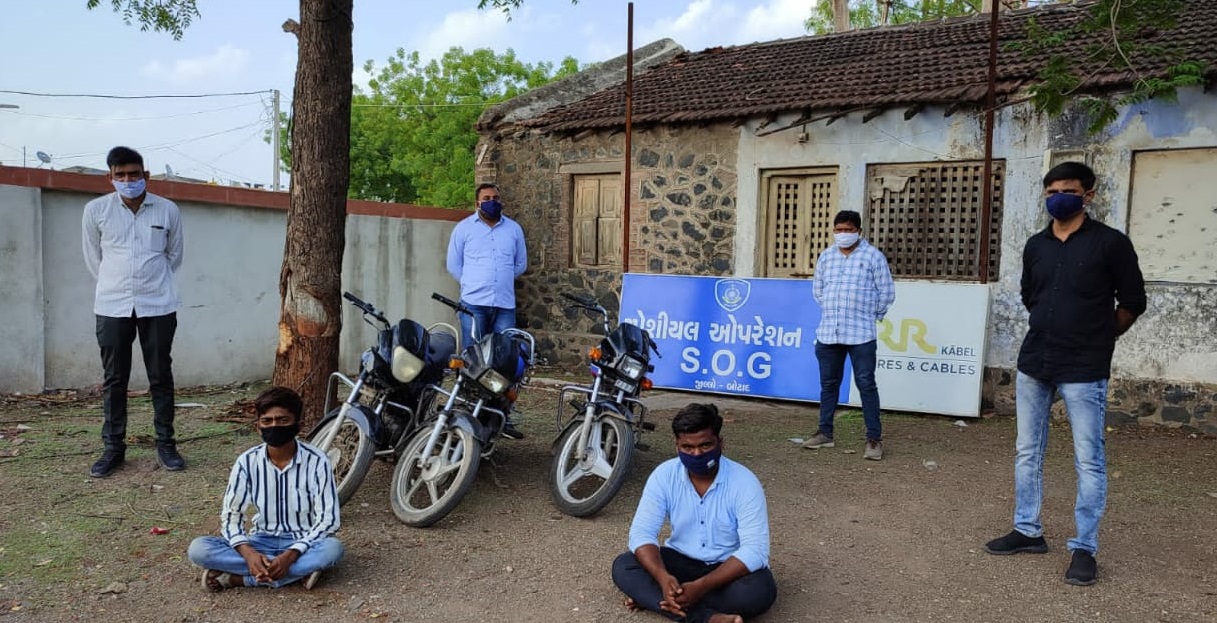 બોટાદ એસ.ઓ.જી. દ્વારા ચોરી થયેલ ત્રણ મોટર સાયકલો સાથે બે ઇસમોને પકડી બે ગુનાનો ભેદ ઉકેલવામાં આવ્યો