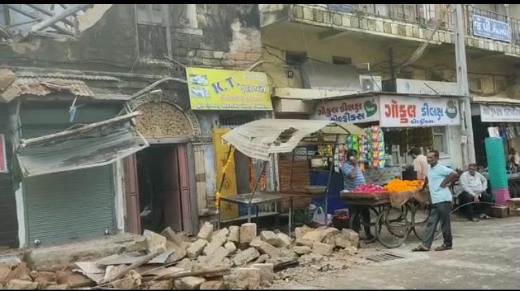 ઉપલેટા શહેરના નટવર રોડ પર દુકાનની ઉપર આવેલ મકાન થયું ધરાશાઈ મકાન ધરાશાઈ થતાં સમગ્ર કાટમાળ આવ્યો રસ્તા પર ઘટના...
