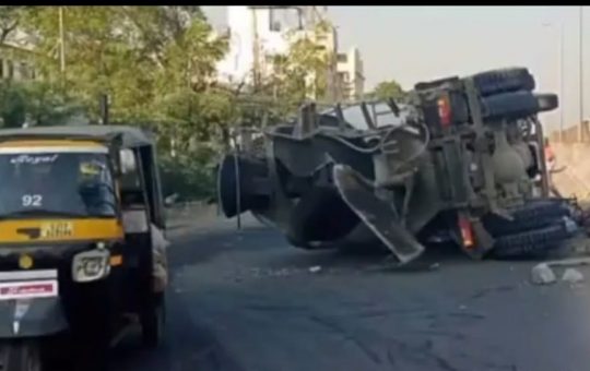 ગાંધીધામ ગળપાડર રોડ પર કોંક્રીટ મિક્ચર ટ્રક સર્વિસ રોડ પર ખાબકી હતી ગાંધીધામથી મુન્દ્રા ને જોડતો ગળપાદર નેશનલ હાઇવે પર...