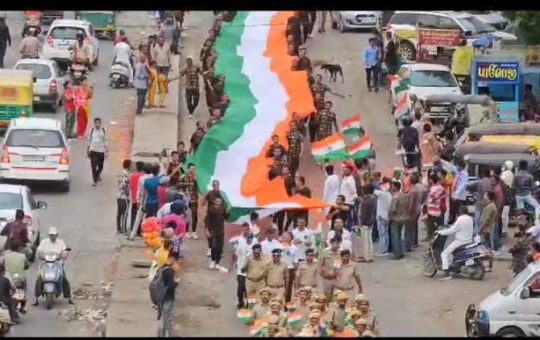 ભુજમાં યોજાઈ ભવ્ય તિરંગા રેલી 250 મીટર લાંબો તિરંગો બન્યો લોકોમાં આકર્ષણનું કેન્દ્ર જ્યુબિલિ ગ્રાઉન્ડથી હમીરસર સુધી લોકોએ પુષ્પવર્ષા કરી...