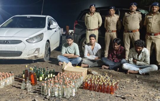 રાપરના આડેસર નજીક ચેકપોસ્ટ પાસેથી પોલીસે ફિલ્મી ઢબે ચાર શખ્સને પકડી પાડી રૂા. 27,550નો અંગ્રેજી શરાબનો જથ્થો જપ્ત કર્યો હતો. આડેસરની સ્થાનિક પોલીસ ગત મોડી રાત્રે ચેકપોસ્ટ ઉપર વાહનોની ચેકિંગ કરી રહી હતી. તે દરમ્યાન એક 500 એક્સ.યુ.વી. કારમાં દારૂ હોવાની તથા અન્ય એક કાર તેનું પાઈલટિંગ કરતી હોવાની બાતમી પોલીસને મળી હતી. પોલીસે ચાંપતી વોચ ગોઠવી સાંતલપુર બાજુથી આવતી કારને રોકી હતી. કારમાંથી કલ્યાણપુરા દેવભૂમિ દ્વારકાના રાહુલ કરશન ચાવડા (આહીર) તથા જામનગરના ભરત દેવાયત કરમોર (આહીર) નામના શખ્સોને પોલીસે પકડી પાડયા હતા. બંનેની પૂછપરછ કરાતાં એક્સ.યુ.વી. 500 કાર માં દારૂ હોવાનું તથા પોતે તે કારની પાઈલટિંગ કરતા હોવાની કેફિયત પોલીસ સમક્ષ આપી હતી. પાછળ આવતી 500 કાર માટે પોલીસે ચેકપોસ્ટ પર બેરીકેડ આડા રાખી દીધા હતા, પરંતુ કારના ચાલકે બેરીકેડને ટક્કર મારી ડિવાઇડરમાં કાર ભટકાવી નાસી ગયો હતો. પોલીસે તેનો પીછો કર્યો હતો અને પોલીસ મથકે ફોન કરી કે.ડી.એમ. પેટ્રોલપંપ પાસે ધોરીમાર્ગ બ્લોક કરાવવા સૂચના આપતાં આ માર્ગને બ્લોક કરાતાં ટ્રાફિકજામ થતાં કારચાલક થંભી ગયો હતો, જેમાં પાછળથી આવેલી પોલીસે આ કારમાંથી કલ્યાણપુર દેવભૂમિ દ્વારકાના કાર્તિક દેવાનંદ ચાવડા (આહીર) તથા કરણ વીરા સોલંકી (ડફેર)ને પકડી પાડયા હતા. આ ગાડીમાંથી ઓફિસ ચોઇસની 750 મિ.લી.ની 3 બોટલ તથા જુદી જુદી બ્રાન્ડના 180 મિ.લી.ના ક્વાર્ટરિયા 265 એમ કુલ રૂા. 27,550નો દારૂ જપ્ત કરાયો હતો. ફોર સેલ ઇન રાજસ્થાન ઓન્લી લખેલ આ દારૂ રાધનપુરના જયંતી ઠાકોર પાસેથી લઇ આવ્યા હતા, જે પૈકી અડધો માલ જામનગરના રિયાઝ મુસ્લિમ વાળાને આપવાનો હતો. હાથમાં ન આવેલા બે શખ્સોને પકડી પાડવા આગળની કાર્યવાહી પોલીસે હાથ ધરી હતી.