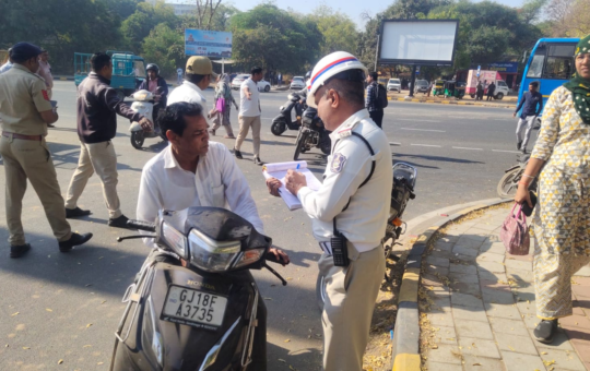 આજરોજ વગર હેલ્મેટ સ્થળદંડ ટ્રાફીક ડ્રાઈવ અંતર્ગત જુના સચિવાલય મુખ્ય પ્રવેશદ્વાર આગળ વગર હેલ્મેટે આવતા સરકારી કર્મચારીશ્રી તેમજ અન્ય દ્વિચક્રી...