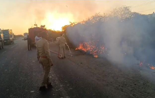 આજે સાંજના સમયે ફાટી નીકળી આગ ફાયરબ્રિગેડ ની ટીમો એ આગ પર કાબુ મેળવ્યો 150 લીટર ફોર્મનો ઉપયોગ કરી ને...