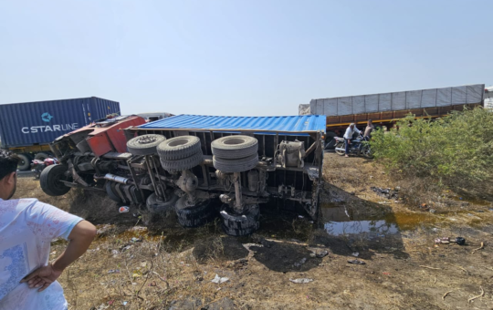 મુન્દ્રા ગાંધીધામ હાઇવે પર તેલ ભરેલું ટેન્કર પલટી ખાઈ જતા લોકોના ટોળેટોળા ઉમટ્યા સીંગતેલ ભરેલું ટેન્કર પલટી ખાઈ જતા સીંગતેલ...