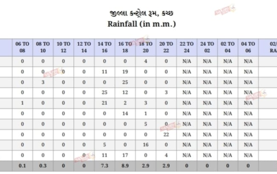 copy image જિલ્લાના સાત તાલુકામાં વરસાદ નોંધાયો અંજારમાં દોઢ ઇંચ વરસાદ રાપર, ભચાઉ, ભુજ, ગાંધીધામ માં એક ઇંચ વરસાદ અન્યત્ર...