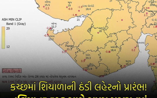 ભારતીય હવામાન વિભાગ, અમદાવાદના તાજા અહેવાલ મુજબ 6 નવેમ્બર 2025ની સવારે કચ્છના નલિયામાં ન્યૂનતમ તાપમાન 15.5°C નોંધાયું છે, જે રાજ્યમાં...