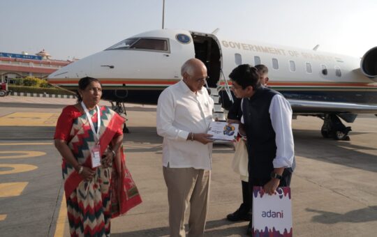 કચ્છ પધારેલા મુખ્યમંત્રીશ્રી ભૂપેન્દ્ર પટેલનું ભુજ એરપોર્ટ ખાતે ભાવભર્યું સ્વાગત