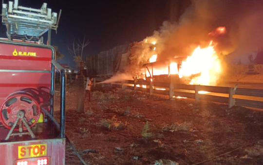 ભચાઉના વોંધ નજીક મીની બસ અને ટ્રેલર વચ્ચે અકસ્માત સર્જાયા બાદ ભયંકર આગ ફાટી નીકળી