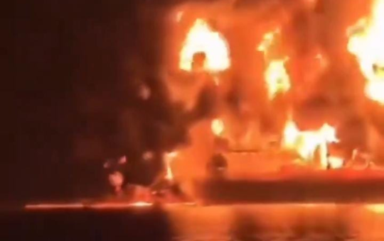 copy image તે બે તેલ ટેન્કરો પર રાત્રે ઈરાને હુમલો કર્યો હતો.... બંનેમાં આગ ભભૂકીથી હતી... બળતું તેલ લીક થઈ...