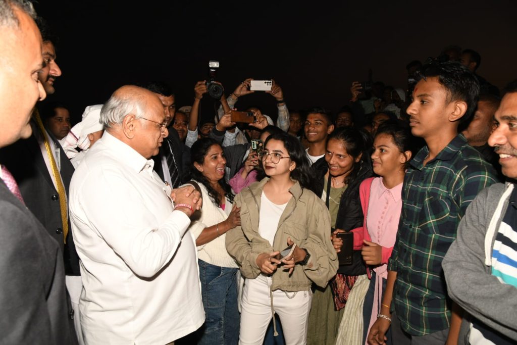 રાજ્યના મુખ્યમંત્રીશ્રી ભૂપેન્દ્રભાઈ પટેલ કચ્છના પ્રવાસે છે. મુખ્યમંત્રીશ્રીએ રણોત્સવ ખાતે જ્યારે તેઓ લાઈટ એન્ડ સાઉન્ડ શોનું અનાવરણ કરવા પધાર્યા ત્યારે ફરી તેમના સરળ સ્વભાવ અને મૃદુતાના દર્શન થયા હતા. મુખ્યમંત્રીશ્રીએ ત્યાં ઉપસ્થિત પ્રવાસીઓને સામે ચાલીને મળવા ગયા હતા. જ્યાં તેમણે આ પ્રવાસીઓ સાથે વાતચીત કરી હતી અને સફેદ રણ અને કચ્છનો પ્રવાસ કેવો લાગ્યા વગેરે વાતચીત કરી હતી. આ પ્રસંગે પ્રવાસીઓ આનંદિત થઈ મુખ્યમંત્રીશ્રી સાથે સેલ્ફી પણ લીધી હતી.