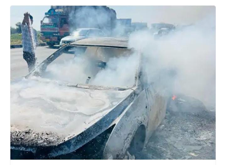 મહેસાણા ઊંઝા નેશનલ હાઇવે ઉનાવા રોડ પર ચાલુ ગાડીમાં શોર્ટસર્કિટના કારણે આગ ભભૂકી : સદભાગ્યે કોઈ જાનહાનિ નહીં
