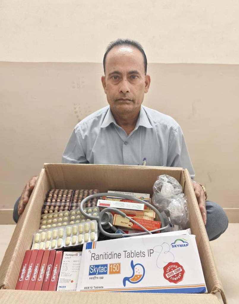 માન.પોલીસ મહાનિરીક્ષકશ્રી જે.આર.મોથલીયા સાહેબ, સરહદી રેન્જ ભુજ-કચ્છ તથા પોલીસ અધિક્ષકશ્રી સાગર બાગમાર સાહેબ પૂર્વ કચ્છ,ગાંધીધામનાઓ દ્વારા જિલ્લામાં લોકોના હેલ્થ સાથે ચેડા કરી ગેરકાયદેસરની પ્રેકટીસ કરતાં બોગસ ડોક્ટરોને પકડી પાડવા મળેલ સુચના મુજબ એસ.ઓ.જી.ટીમે મળેલ ખાનગી બાતમી આધારે કંડલા મેઈન બજાર ડી.ટી.પી. હોસ્પિટલની સામે ગેરકાયદેસર ડોક્ટરની પ્રેક્ટીસ કરતાં તીર્થરાજસિંહ સુખદેવસિંહ પટેલ નાઓની તપાસ કરતાં મજકુર ઇસમ કોઈપણ સક્ષમ સંસ્થા ગુજરાત મેડીકલ કાઉન્સીલનું ૨જીસ્ટ્રેશન અંગેનુ પ્રમાણપત્રો મેળવ્યા વગર ર્ડોકટરની પ્રેકટીસ કરી લોકોના આરોગ્ય સાથે ચેડા ક૨તાં જણાયેલ અને તેમના કબ્જામાંથી ગે.કા.૨ીતે મેડીકલ પ્રેકટીસથી મેળવેલ એલોપેથીક દવાઓ તથા મેડીકલ સાધનો મળી આવતાં મજકુર આરોપીને રાઉન્ડ અપ કરી તેમના વિરૂધ્ધ ધી મેડીકલ પ્રેકટીસ એકટ ૧૯૬૩ મુજબનો ગુન્હો દાખલ કરી આગળની કાર્યવાહી કરવા સારૂ કંડલા મરીન પો.સ્ટે.ને સોંપવામા આવેલ.