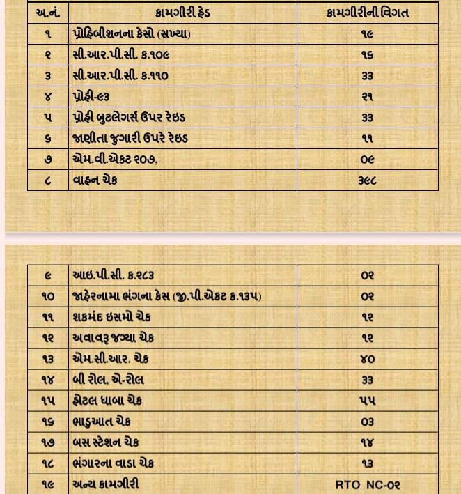 મહે.પોલીસ મહાનિરીક્ષક શ્રી જે.આર.મોશલીયા સાહેબ બોર્ડર રેન્જ ભુજ-કચ્છનાઓએ તથા શ્રી સાગર બાગમાર સાહેબ પોલીસ અધિક્ષકશ્રી પુર્વ કચ્છ ગાંધીધામનાઓએ આપેલ સુચના અને માર્ગદર્શન અન્વયે શ્રી સાગર સાંબડા સાહેબ નાયબ પોલીસ અધિક્ષક ભચાઉ વિભાગ ભચાઉ નાઓએ તા.૧૭/૦૩/૨૦૨૪ ના રોજ કોમ્બિંગ નાઇટનુ ભચાઉ ડીવીઝન વિસ્તારમાં કલાક-૦૩/૦૦ થી કલાક-૦૮/૦૦ વાગ્યા સુધી આયોજન કરવામા આવેલ જે કોમ્બિંગ દરમ્યાન પુર્વ કચ્છ ગાંધીધામના ભચાઉ વિભાગના ભચાઉ – સામખીયારી લાકડીયા, ગાગોદર, આડેસર, રાપર, બાલાસર, ખડીર પોલીસ સ્ટેશનના પોલીસ ઇન્સપેકટરશ્રી-03 પોલીસ સબ ઇન્સપેકટરશ્રી-૧૧, પોલીસ કર્મચારીઓની સંખ્યા-૧૨૩ નાઓની અલગ અલગ પોલીસ સ્ટેશન વાઇઝ કુલ-૧૮ ટીમો બનાવી સરકારશ્રીએ ફાળવેલ બોડીવોર્ન કેમેરા, લાઠી, ફેલ્મેટ અને ટોર્ચ જેવી પુરતી સાધન સામગ્રી સાથે ડિવીઝનના પોલીસ સ્ટેશન વિસ્તારમા કોમ્બિંગ કરવામાં આવેલ જેમાં અલગ અલગ ટીમો દ્વારા સઘન સરપ્રાઇઝ ચેકીંગ હાથ ધરી અગાઉ પ્રોહીબીશન તેમજ ચોરી વિગેરે જેવા અલગ અલગ ગુન્હામાં પકડાયેલ ઇસમોના મકાન ચેક કરી તેમજ વાહન ચેકીંગ કરી નીચે મુજબની કામગીરી કરવામાં આવેલ છે.