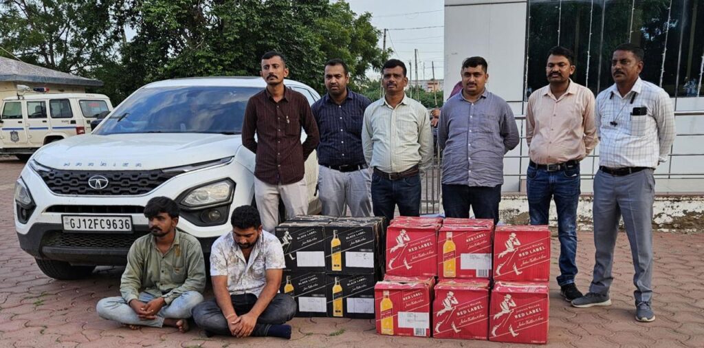 પોલીસ મહાનિરીક્ષક શ્રી ચીરાગ કોરડીયા સાહેબ, સરહદી રેન્જ ભુજ તથા પોલીસ અધિક્ષકશ્રી સાગર બાગમાર સાહેબ પૂર્વ કચ્છ, ગાંધીધામનાઓ તરફથી જિલ્લામાં પ્રોહીબીશનની પ્રવૃતિ નેસ્ત નાબુદ કરવા જરૂરી સુચના આપેલ હોય જેથી એન.એન.ચુડાસમા પોલીસ ઇન્સ્પેક્ટર એલ.સી.બી.નાઓની આગેવાનીમાં એલ.સી.બી. ની ટીમ ગાંધીધામ બી ડીવી. પો.સ્ટે. વિસ્તારમાં પેટ્રોલીંગમાં હતી દરમ્યાન બાતમી હકીકત મળેલ કે એક સફેદ કલરની હેરીયર કાર રજી.નં. જીજે-૧૨- એફસી-૯૬૩૬વાળીમાં વિદેશી દારૂનો જથ્થો ભરી બે ઇસમો ભચાઉ હાઇવે વરસાણા પુલીયા પાસ થઇ ગાંધીધામ તરફ આવી રહેલ છે. જેથી એલ.સી.બી. ટીમ ઉપરોકત ગાડીની વોચમાં હતી તે દરમ્યાન હકીકતવાળી હેરીયર કાર ઇન્દીરાનગર સ્મશાન પુલીયા પાસે આવતા તેને કોર્ડન કરી તેની ઝડતી તપાસ ક૨તા નીચે જણાવેલ બે ઇસમો તથા પ્રોહી.નો મુદ્દામાલ પકડી પાડી કાયદેસરની કાર્યવાહી કરી આગળની કાર્યવાહી એલ.સી.બી. દ્વારા ચલાવવામાં આવે છે. પકડાયેલ આરોપીઓના નામ. (૧) શૈલેન્દ્રસિંહ રણજીતસિંહ જાડેજા ઉ.વ.૨૫ રહે. ભોરારા તા.મુન્દ્રા જી.કચ્છ (૨) ડુલદિપસિંહ ધીરજી ચૌહાણ ઉ.વ. ૨૩ રહે.ડાણોઠી તા.સુઈગામ જી.બનાસકાંઠા હાજર ન મળી આવેલ આરોપીનુ નામ રવિ બિશ્નોઈ રહે. સાંચોર રાજસ્થાન કબ્જે કરેલ મુદામાલની વિગત :- વિદેશી દારૂની ૧ લીટરની સ્કોચ વ્હીસ્કી નંગ-૨૫૨ કિ.રૂ. ૭,૭૪,૦૦૦/- મોબાઈલ ફોન નંગ-૩ કિ.રૂ. ૬૧,000/- ટાટા હેરીયર કાર નં.જીજે-૧૨-એફસી-૯૬૩૬ કિ.રૂ. ૧૦,૦0,000/-કુલ મુદામાલ ડી.રૂ.૧૮,૩૫,૦૦૦/- આ કામગીરી લોકલ ક્રાઈમ બ્રાન્ચનાં પોલીસ ઇન્સપેક્ટર એન.એન.ચુડાસમા તથા પોલીસ સબ ઇન્સપેક્ટર એમ.વી.જાડેજા તથા એલ.સી.બી. સ્ટાફ દ્વારા કરવામા આવેલ છે.