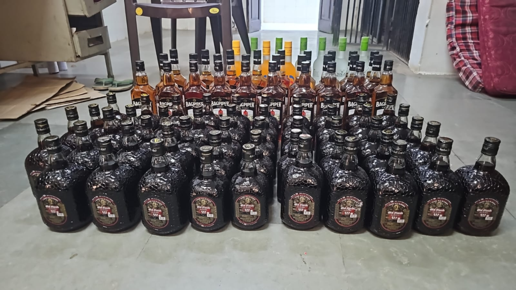 - ભારતીય બનાવટના વિદેશીદારૂની અલગ અલગ બ્રાન્ડની ૭૫૦ એમ.એલ.ની તથા ૧ લીટરની કુલ્લે બોટલો નંગ-૯૦ કી.રૂા. ૫૭,૯૮૩/-