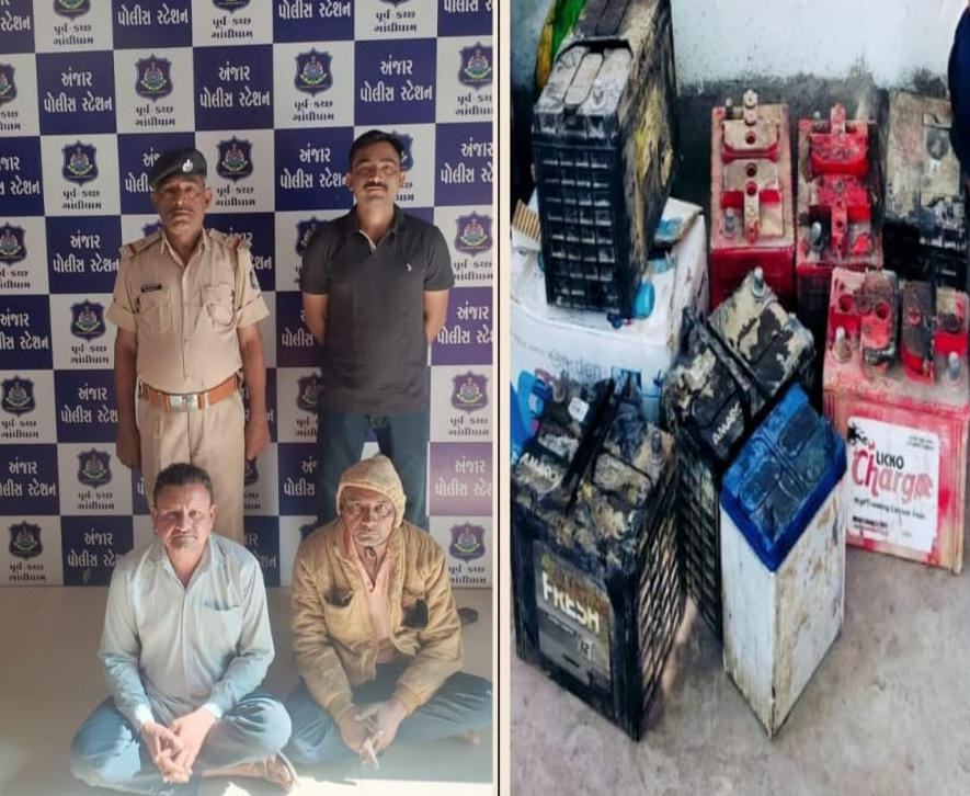 વાહનોની બેટરી ચોરી કરતા બે આરોપીઓને બેટરી નંગ ૧૦ સાથે પડડી પાડતી અંજાર પોલીસ