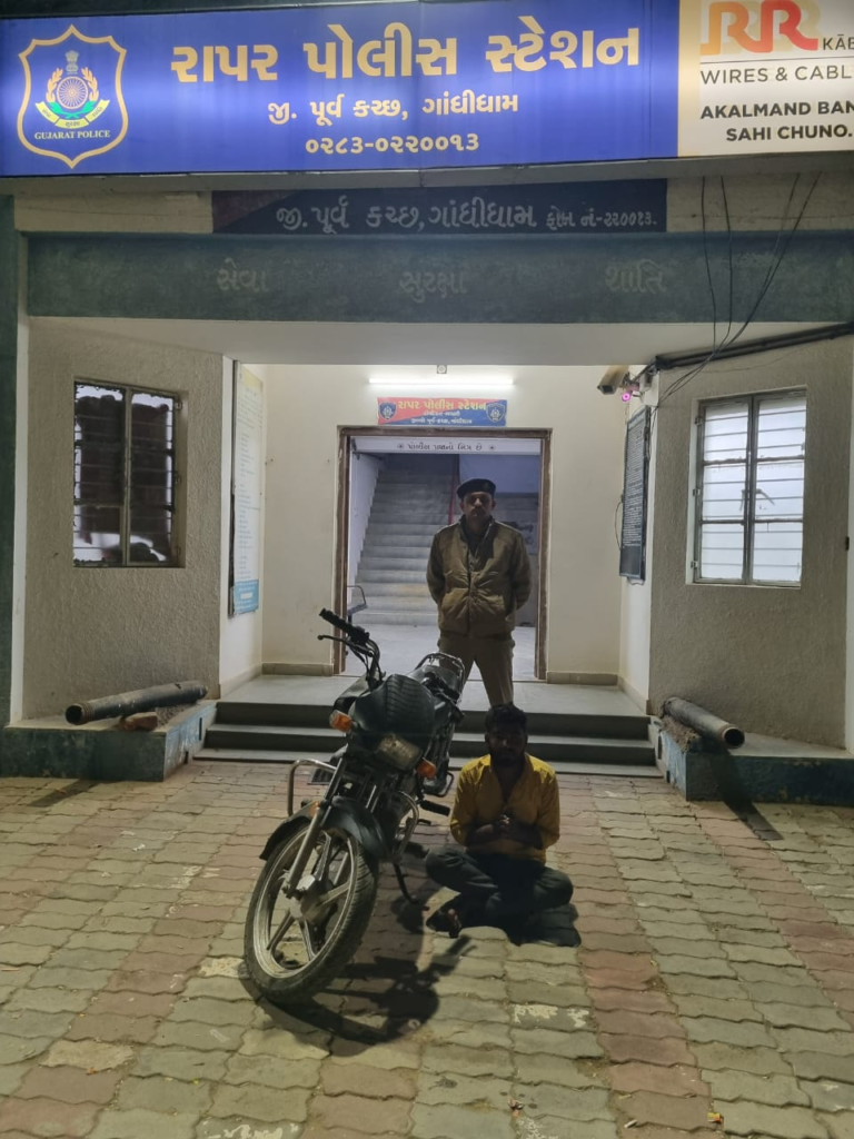 સામખ્યાળી પો.સ્ટે વિસ્તારમાં થયેલ મો.સા ચોરીના ગુનાને પોકેટકોપની મદદથી આરોપીને મુદામાલ સાથે પકડી ગુનો ડીટેકટ કરતી રાપર પોલીસ