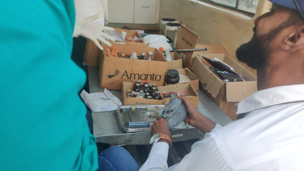 બે કબૂતરોના સ્થળ પર તાત્કાલીક અસરથી ઈમર્જન્સીમાં અર્જન્ટ ૧૯૬૨ કરૂણા એનિમલ એમ્બ્યુલન્સના સ્ટાફ દ્વારા ટાંકાઓ આપી રહ્યાં છે અને હજુ એક કબૂતર રતન ચશ્માં ઘર પાસેથી આવી રહ્યું છે આ એમ્બ્યુલન્સના સ્ટાફ દ્વારા કુલ્લ ચાર કબૂતરોને નવ જીવન બક્ષી રહ્યાં છે. બે એમ્બ્યુલન્સ ૧૯૬૨ તાત્કાલીક અસરથી ઈમર્જન્સીમાં અર્જન્ટ સેવા કાર્યરત સમગ્ર સ્ટાફગણ સાથે કવરેજ કરતાં ભુજ નવી જથ્થાબંધ શરાફ બજાર ગૌ સેવા સમિતિના સેવા રજકણ પંકજકુમાર વ્યાસ આપ નિહાળી રહ્યાં છો.