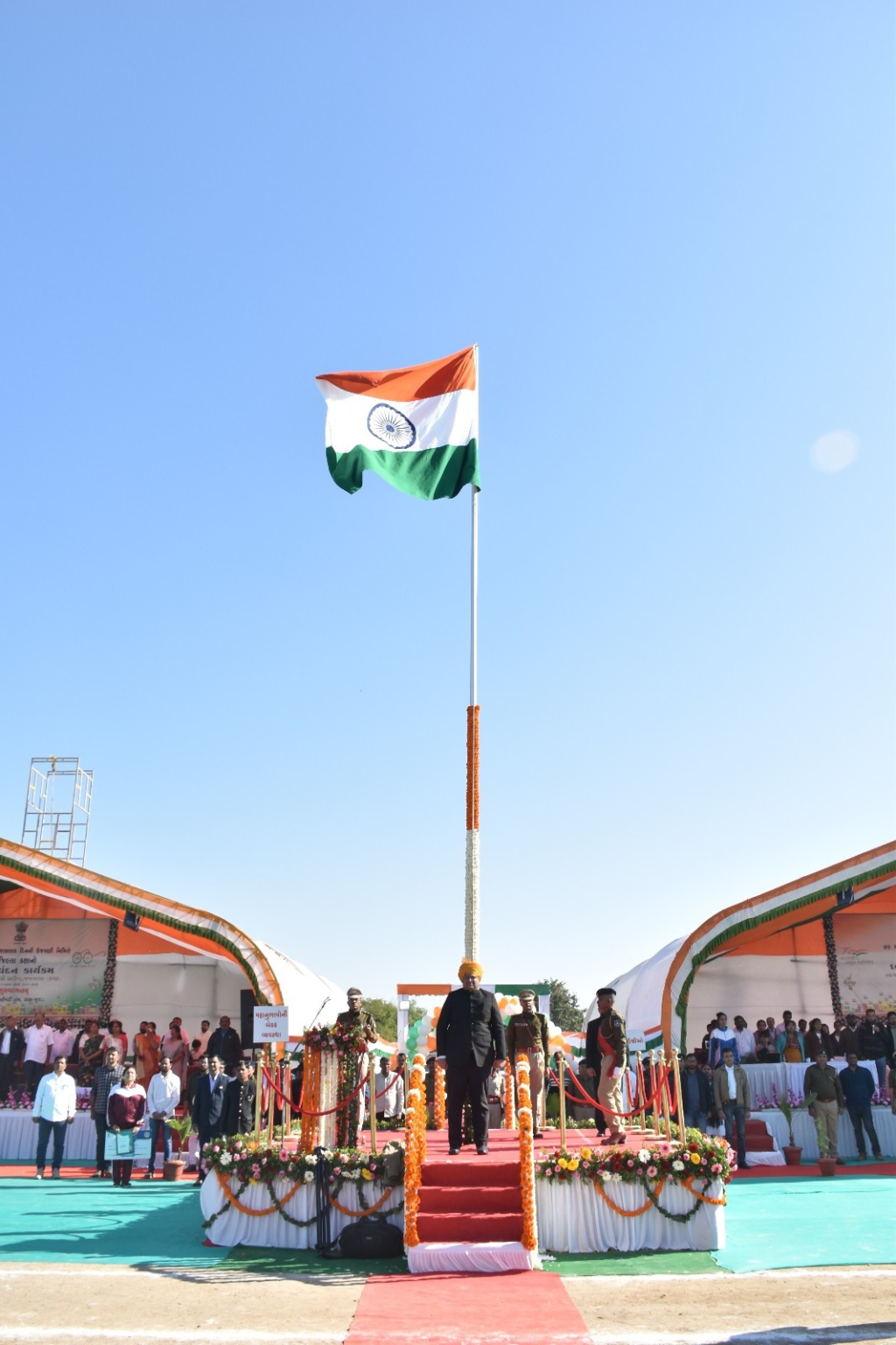 આન, બાન અને શાન સાથે રાષ્ટ્રધ્વજ ફરકાવીને વિવિધ પ્લાટુનની સલામી સાથે મનાવાયેલા ગણતંત્ર પર્વમાં કલેક્ટરશ્રીએ કચ્છની ખમીરવંતી પ્રજાને ૭૬માં પ્રજાસત્તાક દિવસની શુભેચ્છાઓ પાઠવતાં દેશના સ્વાતંત્ર્ય વીરો અને શહીદોને આ પર્વે નત મસ્તક વંદન કરીને જણાવ્યું હતું કે, હિંમતવાન, મહેનતકશ કચ્છીઓની આ ભૂમિ પર ત્રિરંગાને લહેરાવીને હું ધન્યતા અનુભવું છું.