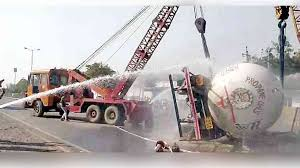 અંજાર-ગાંધીધામ ધોરીમાર્ગ પર એલ.પી.જી. ભરેલ ટેન્કર પલ્ટી જતાં ધોડદામ મચી