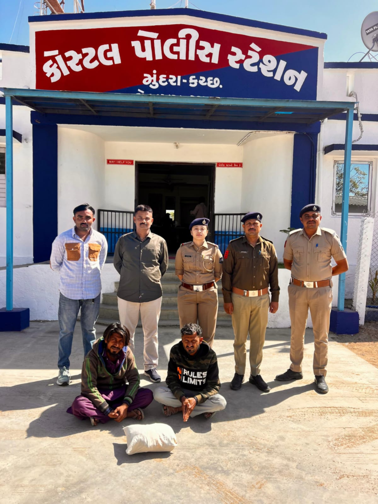 દરમ્યાન ગઈકાલ તા.૧૪/૦૨/૨૦૨૫ ના રોજ મુંદરા મરીન પોલીસ સ્ટેશનના પ્રો.એ.એસ.આઈ. પિનાઝબેન સતારભાઇ દલવાણી તથા એ.એસ.આઇ હરેશભાઇ મેધરાજભાઇ ગઢવી નાઓને મળેલ સયુકત બાતમી આધારે અકબરી પીર મસ્જીદ બાજુમાં લુણી તા.મુંદરા ખાતે બે ઇસમો પોતાના કબ્જાના મકાનમાં ગેરકાયદેસર વેચાણ અર્થે માદક પદાર્થ ગાંજાના જથ્થા રાખેલ હોય અન્વયે બે ઇસમોને ઝડપી પાડી એન.ડી.પી.એસ.એકટ હેઠળ સરાહનીય કાર્યવાહી કરવામાં આવેલ છે.
