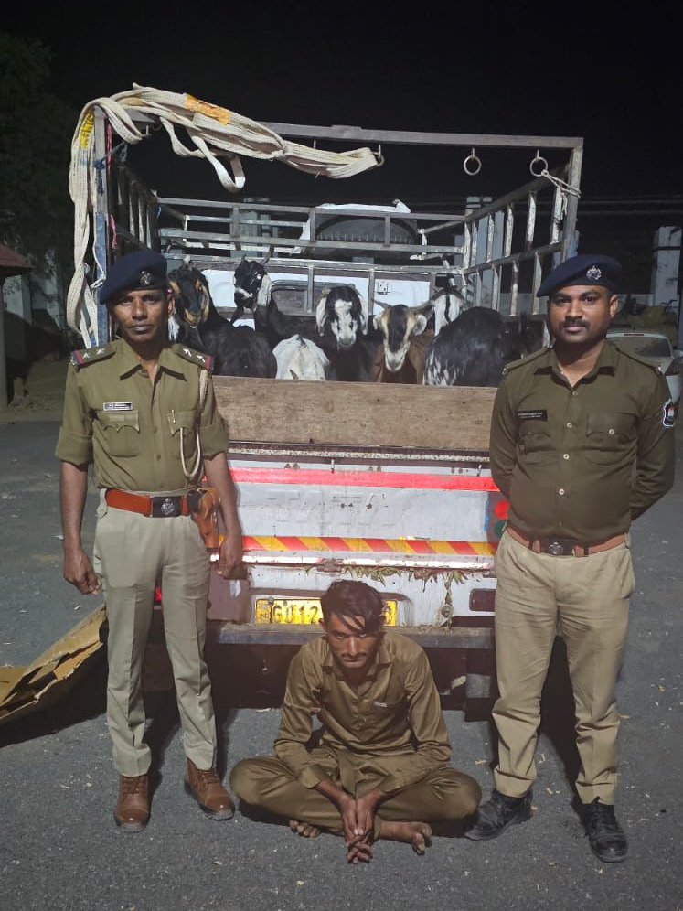જે સુચના અનુસંધાને શ્રી વી.બી.પટેલ પોલીસ ઇન્સ્પેકટર ખાવડા પોલીસ સ્ટેશન નાઓના માર્ગદર્શન મુજબ આજરોજ પો.સબ.ઇન્સ. એન.જે.ભગોરા, તથા એ.એસ.આઇ. મેધરાજભાઈ મંગલભાઇ ગઢવી તથા પો.હેડ.કોન્સ. મહેશભાઇ જોઇતાભાઇ પરમાર, તથા પો.હેડ.કોન્સ. પ્રધ્યુમનસિંહ જલાભાઇ વાઢેર તથા પો.કોન્સ. રમેશભાઇ રૂપશીભાઇ પ્રજાપતિ નાઓ સાથે પોલીસ સ્ટેશન વિસ્તાર પેટ્રોલીગમા હતા તે દરમ્યાન પો.કોન્સ. રમેશભાઇ રૂપશીભાઇ પ્રજાપતિ નાઓને ખાનગી રાહે બાતમી હકીકત મળેલ કે, ગઇ તા.10/02/2025 ના રાતના 10 નંગ જે બકરાની ચોરી થયેલ હતી તે બકરાને લઇને સાબીર અજીજ સમા રહે- નાના દિનારા તા.ભુજ, વાળો પોતાના છોટાહાથી રજી. નંબર જી.જે.12-બીટી-9010 વાળામાં લઇને નિકળેલ છે તેવી ભરોસા લાયક બાતમી હકીકત મળતા ખાવડા ઝહીરવાસ પાસે આવેલ વળાંક પર ઉભા રહી બાતમી હકીકત મુજબનો છોટાહાથી આવતો હોય જેને રોકાવી તમામ સ્ટાફ દ્વારા કોર્ડન કરી છોટાહાથી ચાલકની નીચે ઉતારી છોટાહાથીન ઠાઠામાં જોતા 10 નંગ બકરા ભરેલ હોય જે બકરા બાબતે યુકિત પ્રયુકિતથી પુછપરછ કરતા પોતે સહ આરોપી સાથે મળી બકરા ચોરી કરેલ હોવાની કબુલાત કરતો હોય જેથી સદર ગુના કામે અટક કરી ધોરણસરની કાર્યવાહી કરેલ છે.