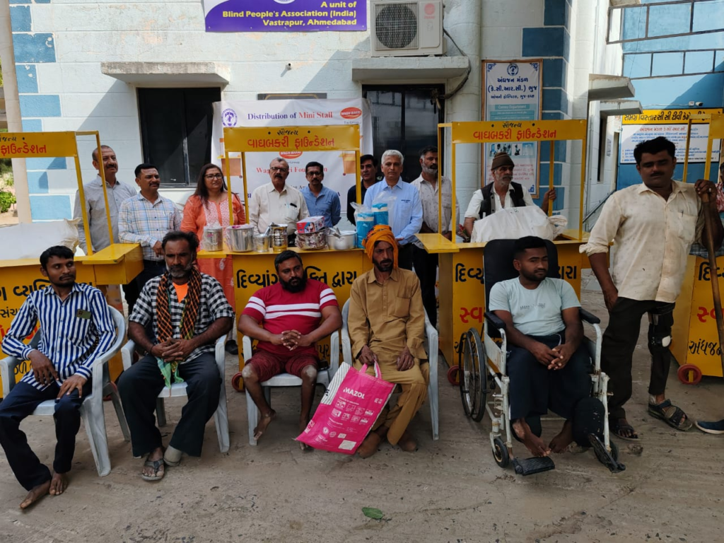 અંધજન મંડળ અમદાવાદ અને વાઘ બકરી ફાઉન્ડેશન દ્વારા ગુજરાતના 100 દિવ્યાંગ વ્યક્તિઓને ચા બનાવવાની વસ્તુ અને કેબીન અર્પણ કરવામાં આવ્યા છે.