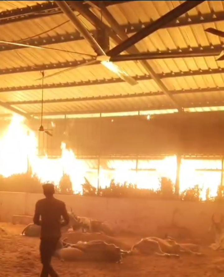 અંજાર આદિપુર રોડ શનિદેવ મંદિર પાસે આવેલ કામધેનું ગૌશાળા માં લાગી ભયંકર આગ