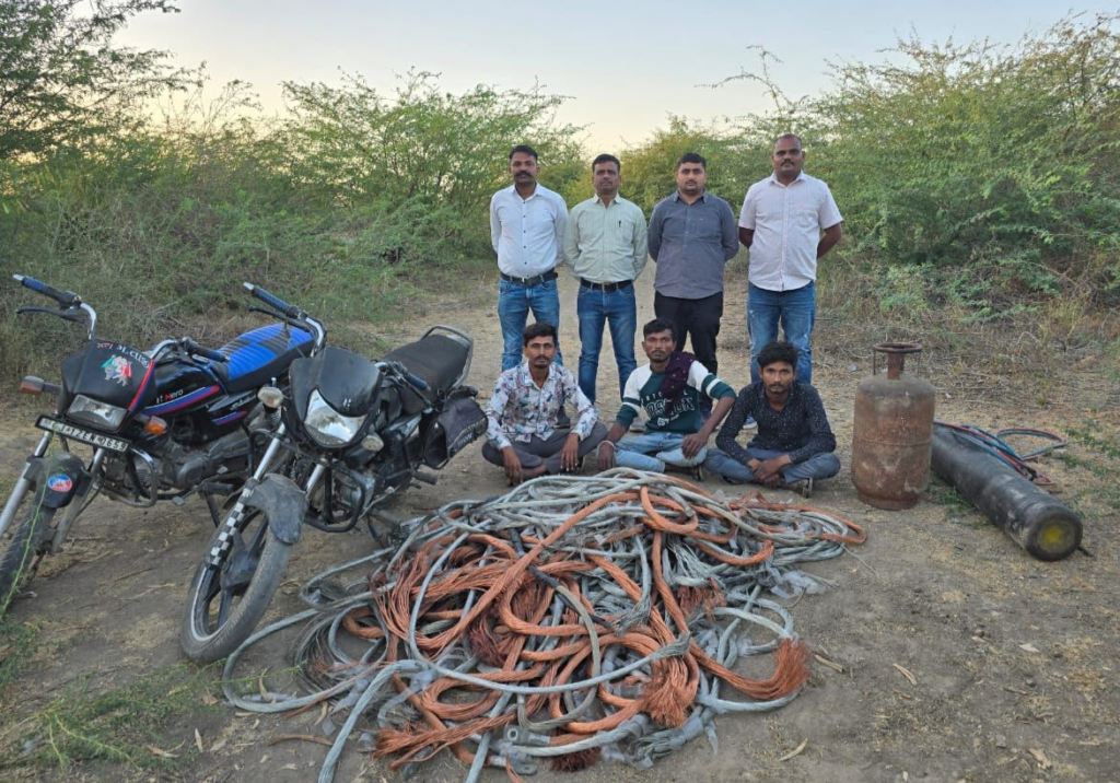 પોલીસ મહાનિરીક્ષક શ્રી ચીરાગ કોરડીયા સાહેબ, સરહદી રેન્જ ભુજ તથા પોલીસ અધિક્ષકશ્રી સાગર બાગમાર સાહેબ પૂર્વ કચ્છ, ગાંધીધામ નાઓ તરફથી જિલ્લામાં બનતા મિલ્કત સબંધી ગુનાઓ શોધી ડાઢવા તથા અટકાવવા સારૂ જરૂરી સુચના આપેલ હોઈ જેથી એન.એન.ચુડાસમા પોલીસ ઈન્સપેકટર એલ.સી.બી.નાઓની આગેવાનીમાં એલ.સી.બી. ટીમ સામખીયારી પોલીસ સ્ટેશન વિસ્તારમાં પેટ્રોલીંગમાં હતી દરમ્યાન બાતમી હકીકત મળેલ કે આંબલીયારા ગામની સીમ વિસ્તારમાં આવેલ પવનચક્કીમાંથી ડોપર ડેબલ વાયર ચોરી થયેલ. જે ચોરીનો મુદ્દામાલ અમુક ઇસમો લલીયાણા થી મોરાધામ જતા રોડ ઉપર આવેલ વરનારી તળાવ પાસે રાખી સગેવગે કરવાની તૈયારીમાં છે. જેથી એલ.સી.બી. ટીમ દ્વારા જરૂરી વર્કઆઉટ કરી ઉપરોકત જગ્યાએ જઈ પવનચક્કીના કોપર કેબલ વાયરના જથ્થા સાથે ત્રણ ઈસમોને પકડી પાડી પુછપરછ કરતા કોઈ બીલ ડે આધાર પુરાવા ન હોય આ ડોપર કેબલ વાયર સામખ્યાળી પો.સ્ટે. વિસ્તારમાંથી આંબલીયારા ગામની સીમમાંથી પવનચડડીમાથી કોપર કેબલ વાયરની ચોરી કરેલ હોવાની કબુલાત આપતા કાયદેસરની કાર્યવાહી કરી આગળની કાર્યવાહી માટે સામખ્યાળી પોલીસ સ્ટેશનને સોંપવામાં આવેલ છે.