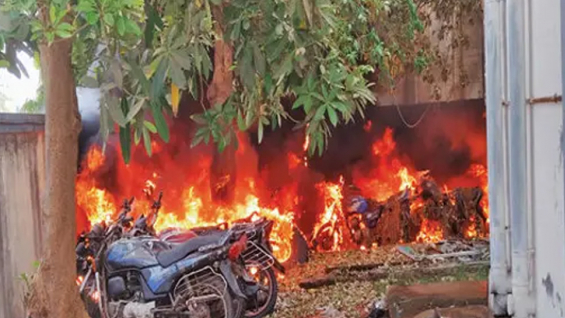 આણંદ ખાતે આવેલ બોરસદ શહેર પોલીસ સ્ટેશનના પાર્કિંગમાં આગ ભભૂકી ઉઠતાં 25 વાહનો બળીને ભશ્મ થયા