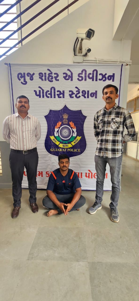 પોતાના રહેણાક મકાને હાજર છે જે આધારે તાત્કાલીક વર્કઆઉટ કરી પો.સ.ઈ શ્રી જે.જે.રાણાનાઓની આગેવાનીમાં એક ટીમ પોલીસ સ્ટેશનથી અંજાર મધ્યે રવાના કરી આરોપીના રહેણાક મકાને જઇ આરોપીને પકડી પાડી હસ્તગત કરી પોલીસ સ્ટેશન લાવવામાં આવેલ છે. અને સદર ગુન્હા કામે આગળની તપાસ ચાલુમાં છે.