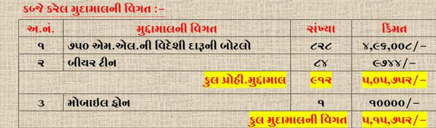 લાકડીયા પો.સ્ટે. વિસ્તારમાંથી રૂ.૫,૦૫, ૭૫૨/- નો પ્રોહીબીશનનો ગણનાપાત્ર કેસ શોધી કાઢતી લોકલ ક્રાઈમ બ્રાન્ચ પુર્વ-કચ્છ,ગાંધીધામ