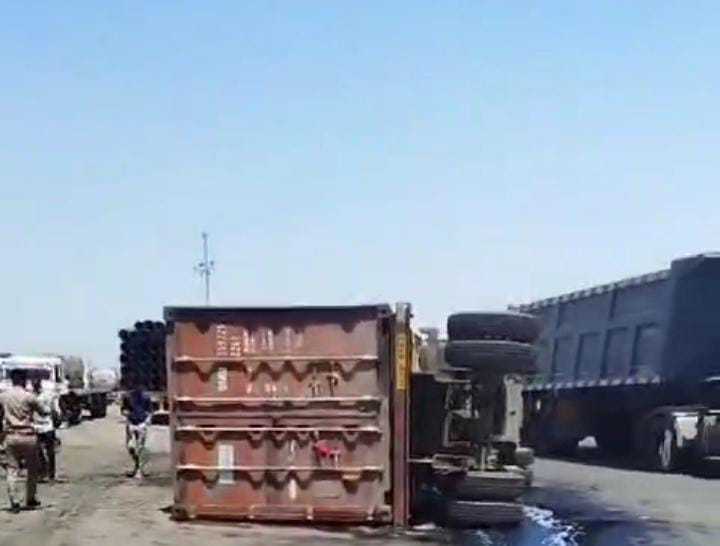 મુન્દ્રા ના પ્રાગપર ચોકડી પાસે કન્ટેનર ટ્રક પલ્ટી મારી ગયું