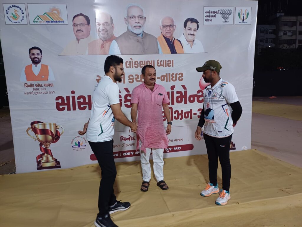 થી કચ્છ લોકસભા પરિવાર સાંસદ ક્રિકેટ ટુર્નામેન્ટ – ૩ જયુબિલી ગ્રાઉન્ડ ભુજ મધ્યે રમાઇ રાજી છે. ૫૨૦