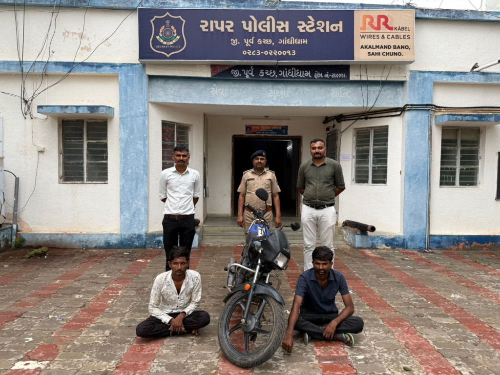 ગણતરીના કલાકોમાં મો.સા ચોરીનો ભેદ ઉકેલી અનડીટેક્ટ ગુનો શોધી કાઢી બે આરોપીને પકડી પાડતી રાપર પોલીસ