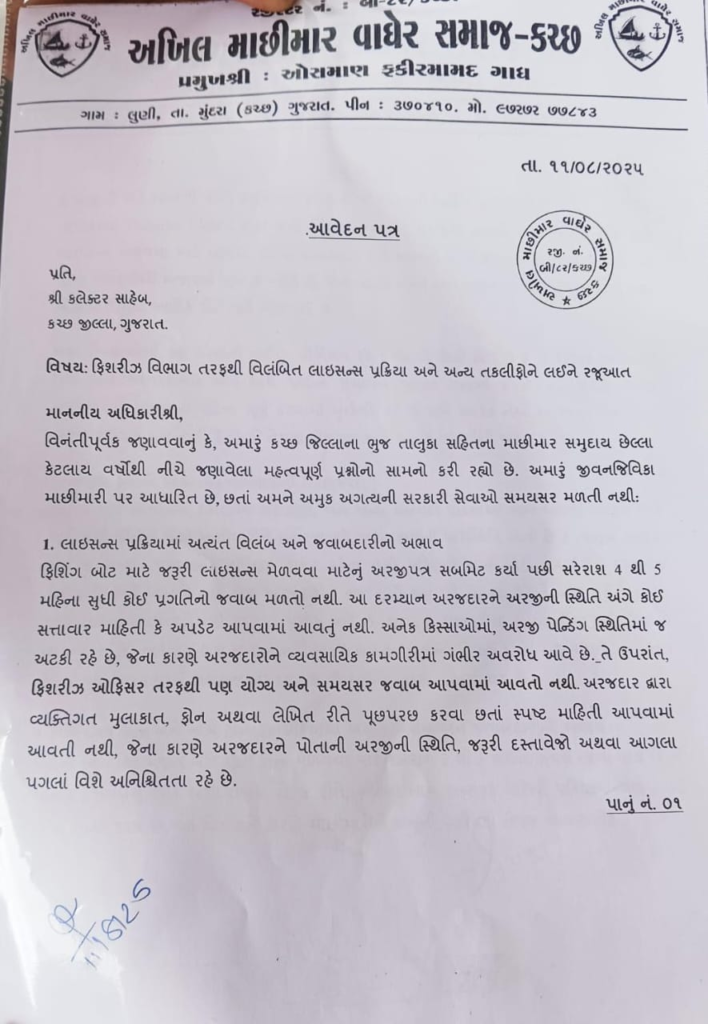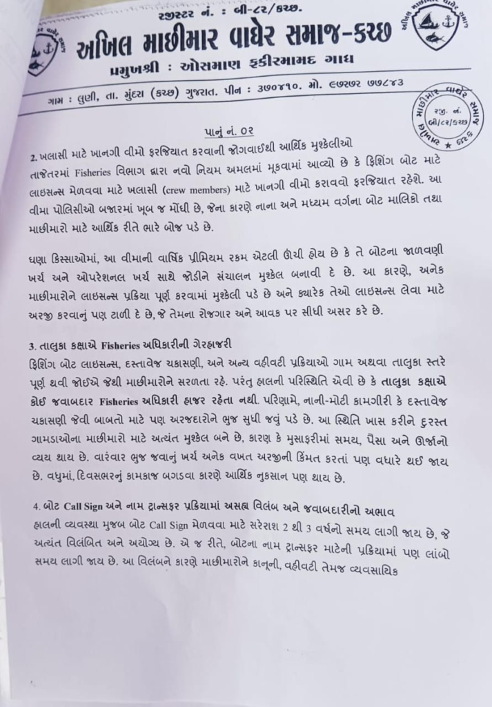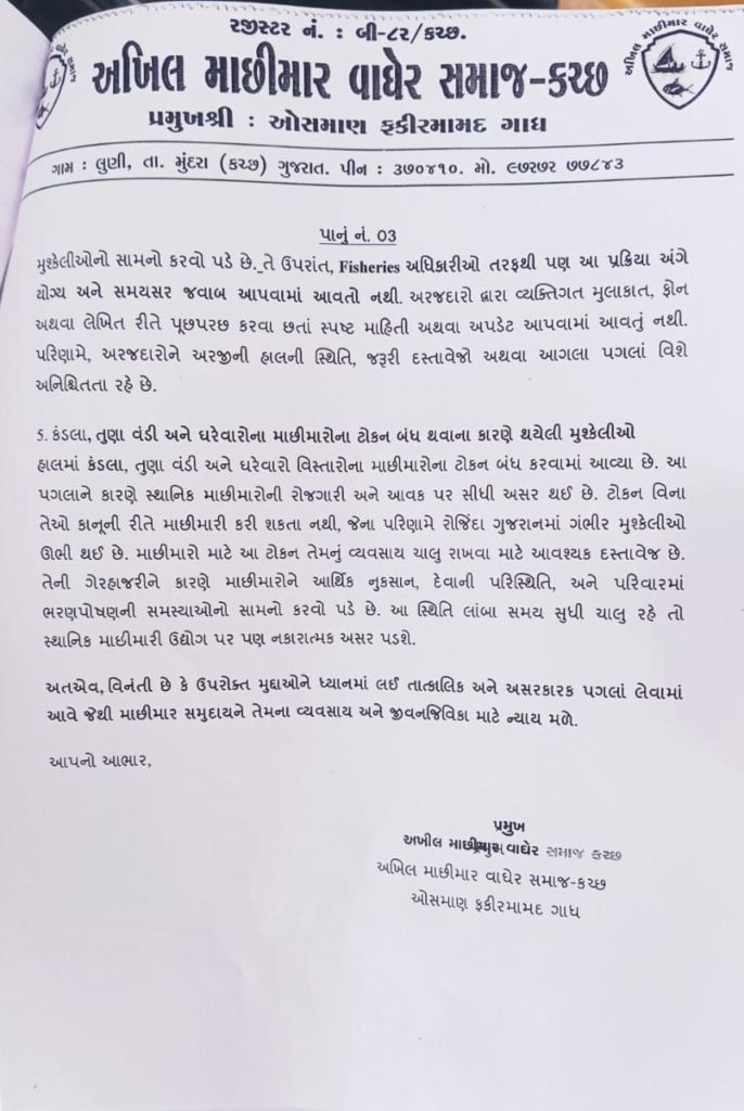 Breaking News Kutch ફિશરીઝ વિભાગ તરફથી વિલંબિત લાઇસન્સ પ્રક્રિયા અને અન્ય તકલીફોને લઈને રજૂઆત કરાઈ 6 months ago Kutch Care News Continue Reading Previous તિરંગા અભિયાન અંતર્ગત આવો જાણીએ રાષ્ટ્રધ્વજ સંહિતા વિશેNext મચ્છુનગર રહેણાંક વિસ્તાર હાલના તબક્કે ન ખસેડવા કલેક્ટર સાહેબ સમક્ષ રજૂઆત કરાઈ More Stories Breaking News Crime Gujarat અમદાવાદમાંથી 9.48 લાખના MD ડ્રગ્સ સાથે એક યુવાનની થઈ ધરપકડ 15 hours ago Kutch Care News Breaking News Crime Gujarat અમદાવાદમાં શિવાલિક’ બિલ્ડિંગમાં વિકરાળ આગ ભભૂકી ઉઠતાં ભારે ધોડદામ મચી 15 hours ago Kutch Care News Breaking News Crime Kutch ખેડોઇ નજીકથી ગાંજાના જથ્થા સાથે એક શખ્સની થઈ ધરપકડ 16 hours ago Kutch Care News
