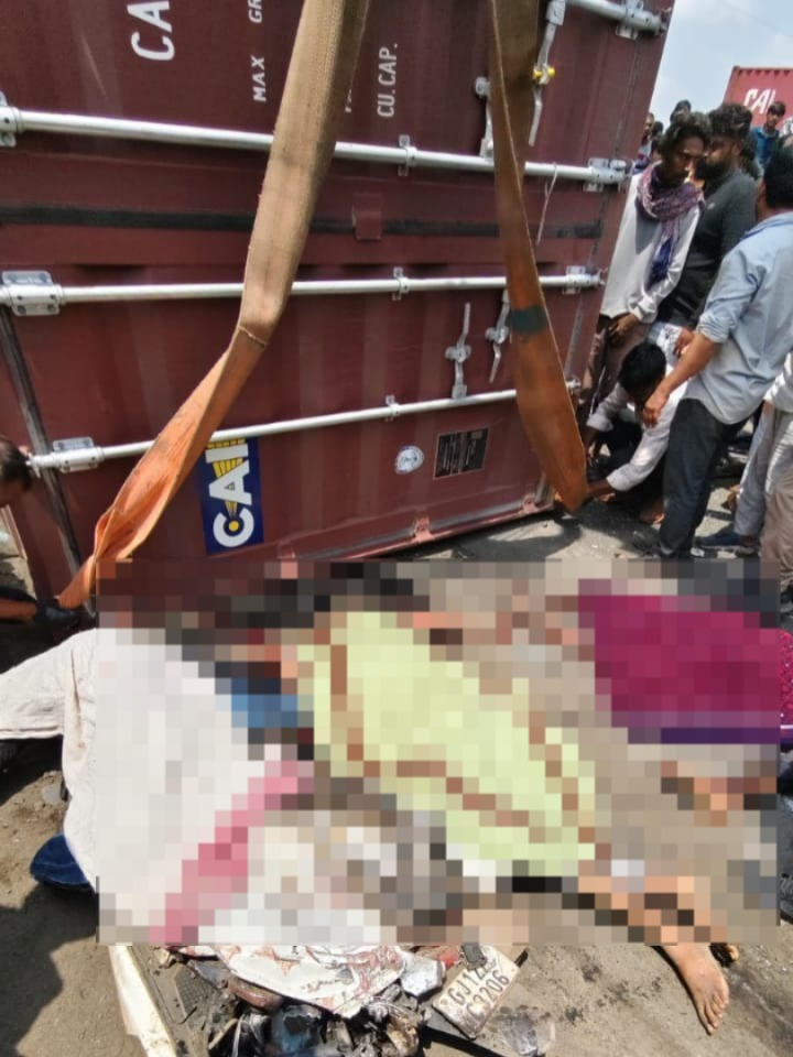 મુંદરા – ખેડોઈ હાઈવે પર ટ્રેલર પરથી કન્ટેનર એક્ટિવા ઉપર પડ્યું …