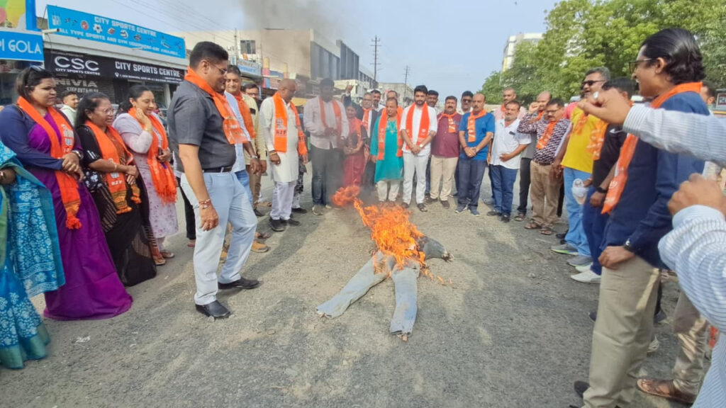 ભારતીય જનતા પાર્ટી ના કાર્યકરો કોંગ્રેસ ની આવી વિકૃત અને હલકી માનસિકતા વિરુદ્ધ વિરોધ પ્રદર્શન કરી પોતાનો રોષ પ્રદર્શિત કરી રહ્યા છે.